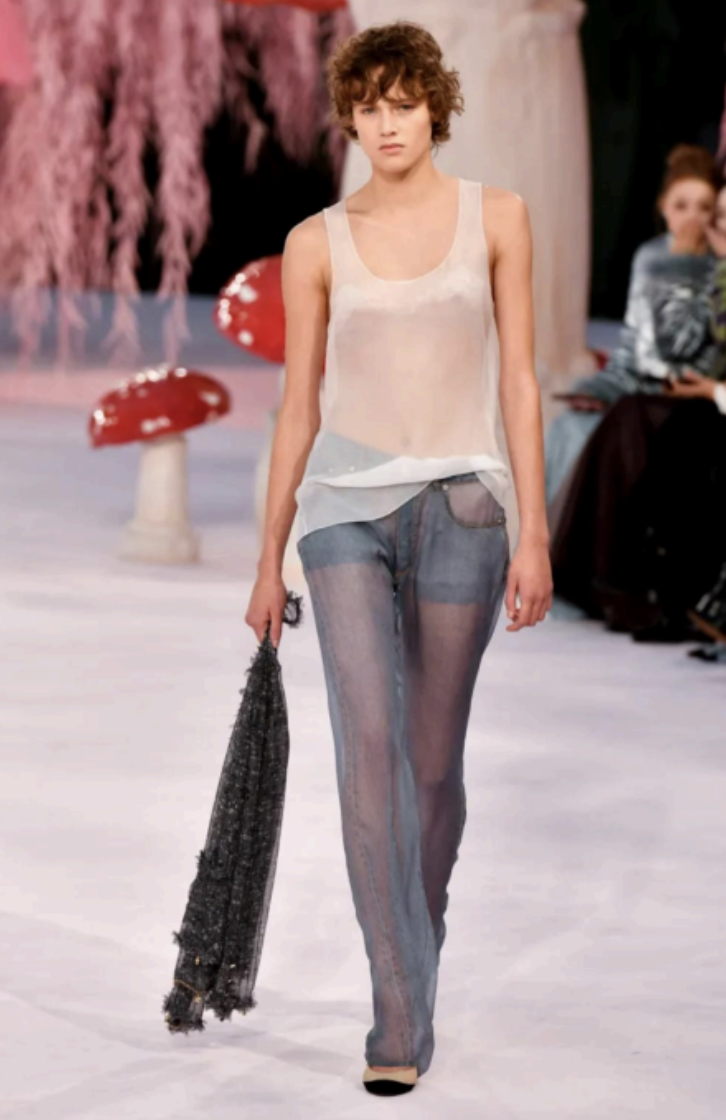 Something I found fantastic was how the clothes reflected couture’s inherent absurdity without being insulting or demeaning. The collection focused on the idea of the clothes and what they represent, being far more important than the clothing itself. As the show went on, these suggestions became concrete, moving from outline to reality. We saw skirts, jeans, jackets, and bags so thin and delicate that you almost wondered if they were there at all. Then, like magic, we found ourselves surrounded by so much texture, color, and depth that it was hard to fathom where we had just been.