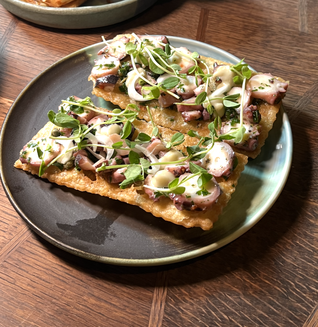 The breadfruit toston consisted of perfectly cooked octopus with “dog sauce” and capers. I don’t even know how to explain what “dog sauce” is, but it usually consists of garlic, Scotch bonnet peppers, and lime zest, which really elevated the dish. That nice spice from the pepper, with the freshness from the octopus, was extremely well balanced on the flaky pastry.