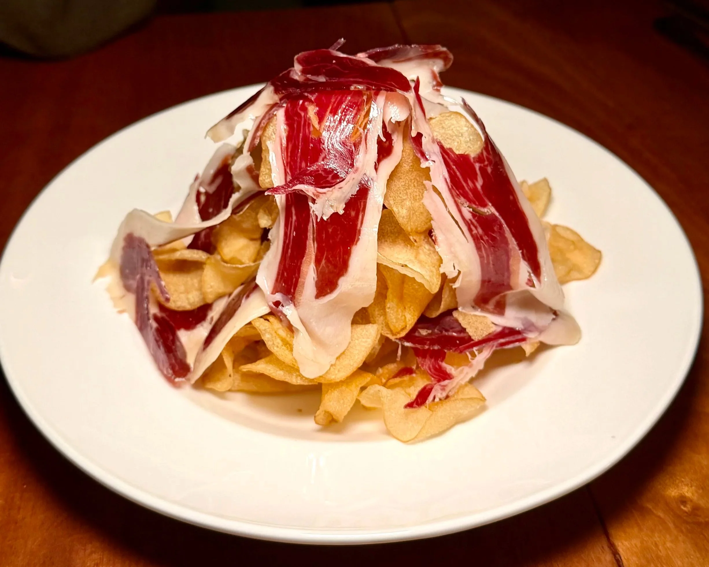 From the Entradas list, we ordered the Cinco Jonas Iberico Con Patatas Chips, which were thinly sliced Iberico with their house-made potato chips.
