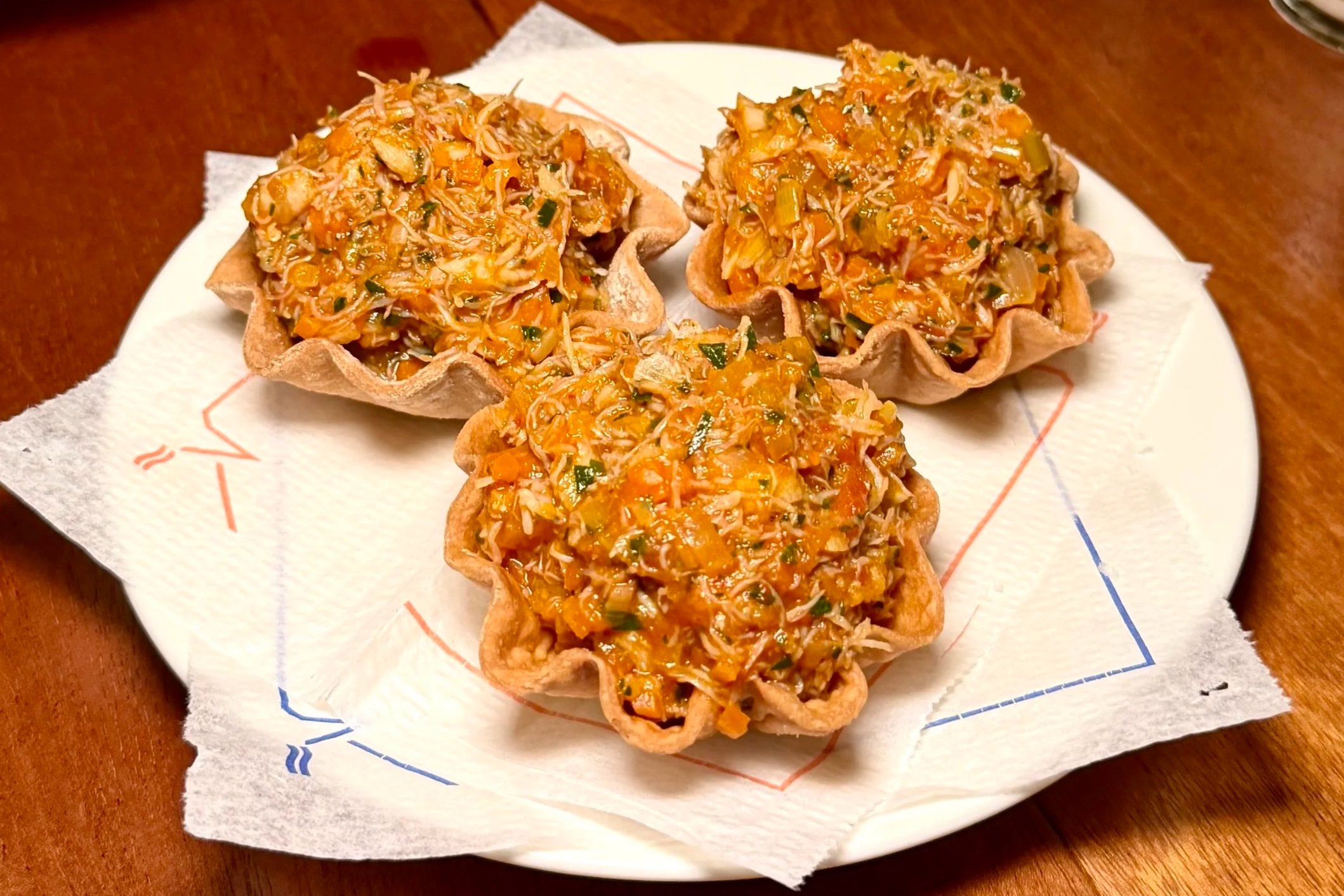 We almost didn’t get this because it seemed a bit too simple, but we absolutely devoured this and highly recommend it. The super-finely sliced potato chips were really, really delicious, and a salty, crispy snack was the perfect way to start off the meal.