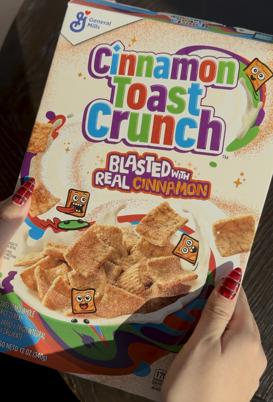 Strain into your glass over ice and top with Cinnamon Toast Crunch cereal and a cinnamon stick to garnish and enjoy!